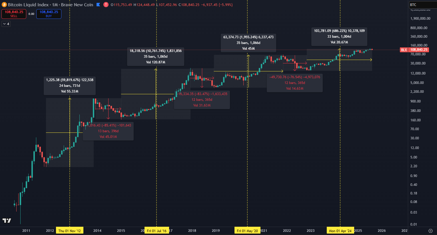 Analyses of charts from TradingView show that corrections often serve as consolidation phases before further growth, rather than as signals of a permanent bear market. Historical data indicate that even when the BTC price dropped by more than 30% or nearly 80% during certain events, the overall bullish market structure was never completely eliminated. Instead, these declines created room for new accumulation and conditions for further upward impulses. Within economic cycles and after halvings, the market has typically regained its strength.
