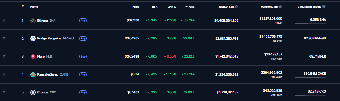 Thanks to a 175% increase over the past three weeks, Ethena (ENA) has become the most profitable digital currency of the past week among the top 100 cryptocurrencies, according to CoinMarketCap. Strong investor interest has driven a sharp rise in its value. In conclusion, the technical outlook for Ethena has fundamentally shifted, and it is now well-positioned for further gains – as long as key support levels hold.