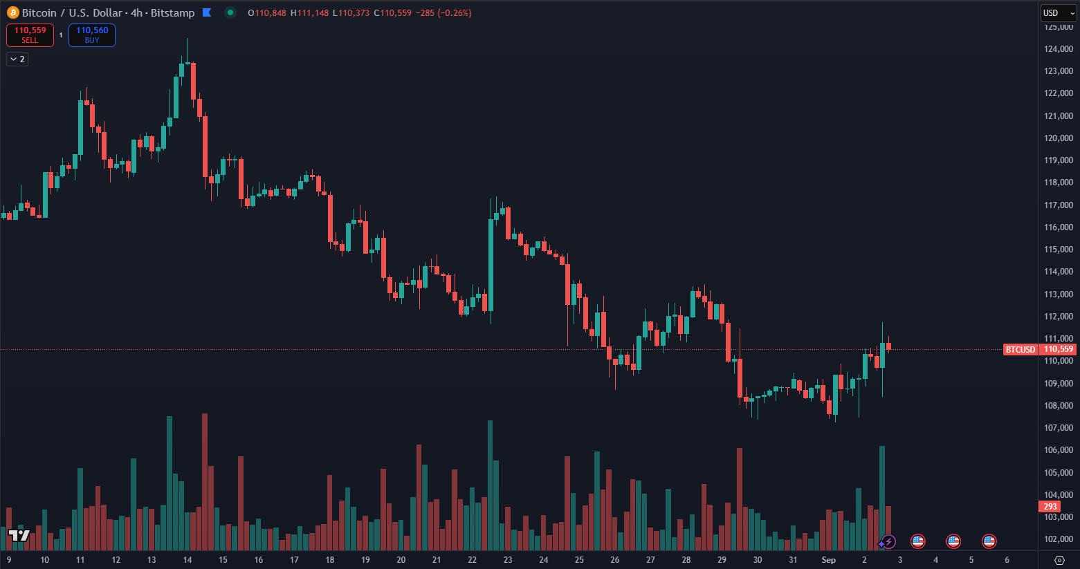 On the other hand, Bitcoin traditionally faces a weak September. Historical data from Coinglass shows it often declined during this period. For instance, in 2020 it dropped 8%, in 2021 by 7.3%, and in 2022 by 3.10%. Currently, according to TradingView, it trades around $110,500, which is 10% below its August high of $124,500.