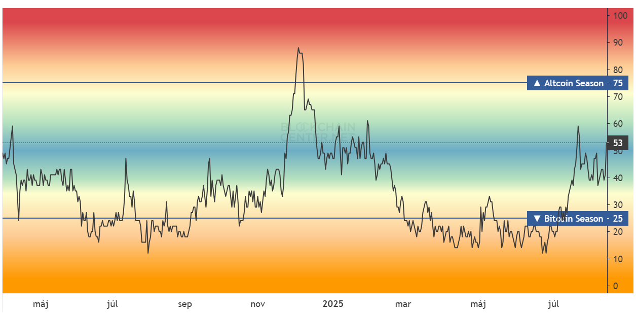 On the other hand, data from Blockchain Center still indicates a neutral zone with a value of 53 out of 100, so technically it is not yet an altcoin season. According to this platform’s definition, 75% of the top 50 coins would need to outperform Bitcoin over the last 90 days. However, the index has been rising for over a month, so the altcoin season could arrive before the end of summer.