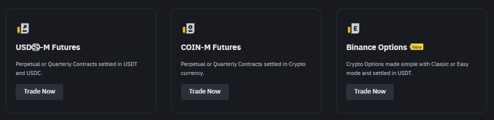 Binance futures and options products