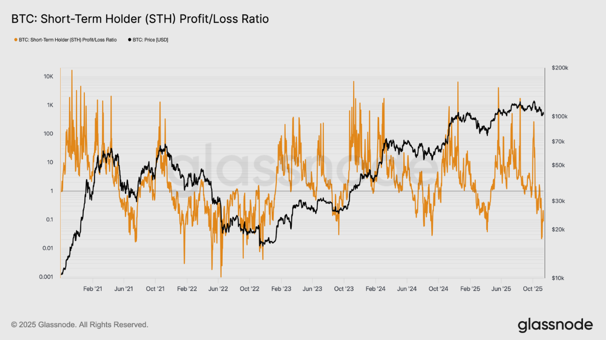 Bitcoin has experienced exceptionally intense price swings in recent weeks, with the level below $100,000 becoming a key battlefield between buyers and sellers. According to the analytical magazine Glassnode, this zone clearly reflects the exhaustion of short-term holders, who realized significant losses during the decline.
