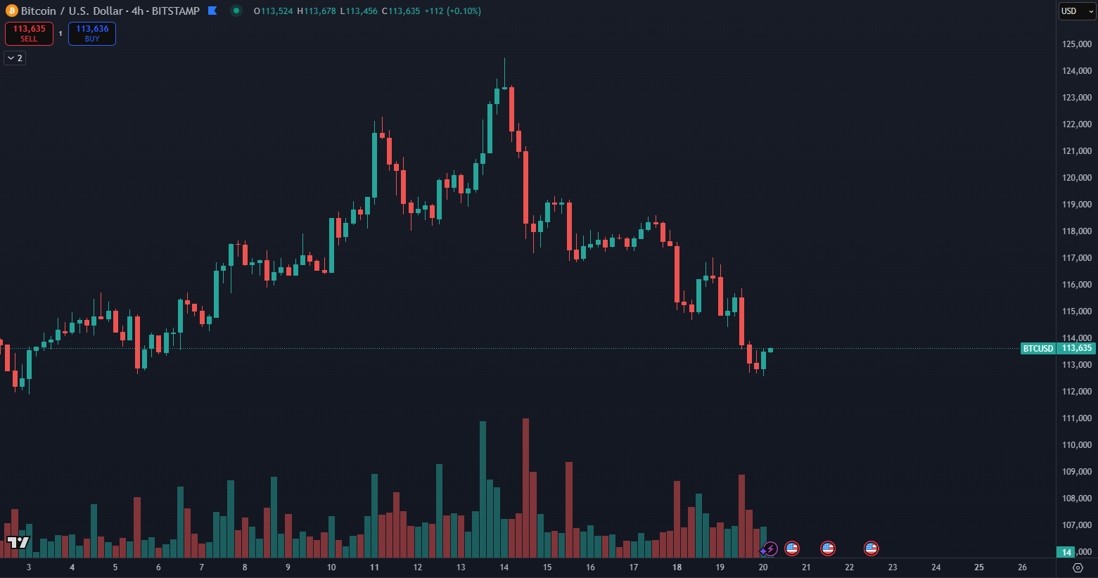 Bitcoin (BTC) after a recent rise above the $124,000 mark experienced a cooldown, with the price dropping to around $112,600. According to TradingView data, this represents a decrease of approximately 7% from the highs of a few weeks ago. This development is not a random event, as the entire crypto market struggles with a combination of factors, including profit-taking, massive liquidations, and uncertainty regarding U.S. Fed policy.