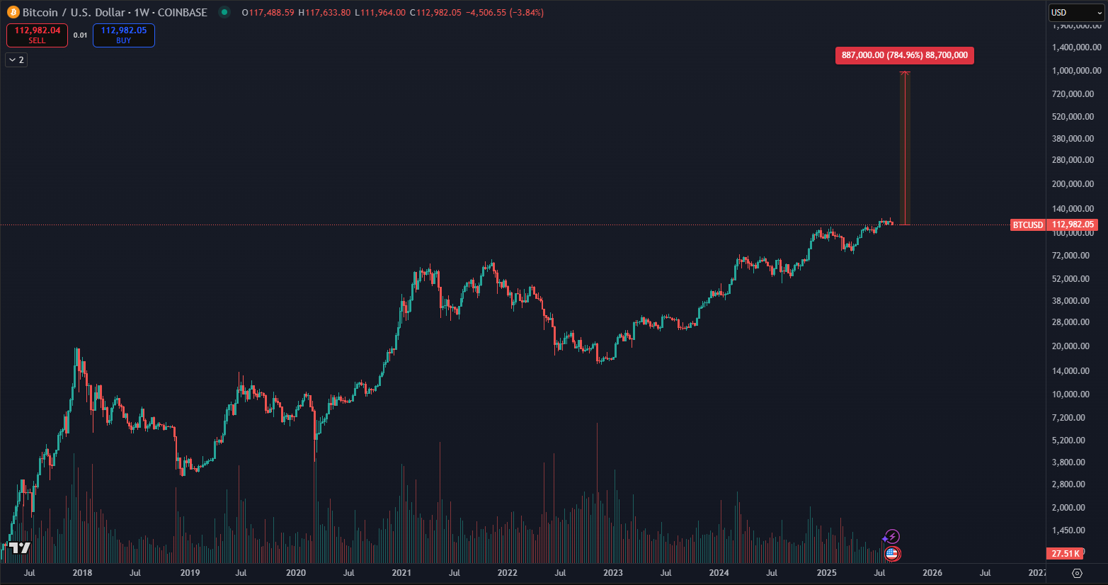 Bitcoin and reaching 1 million. Source: tradingview.com