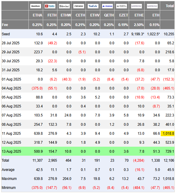 Record capital inflow into ETH ETF. Source: farside.co.uk