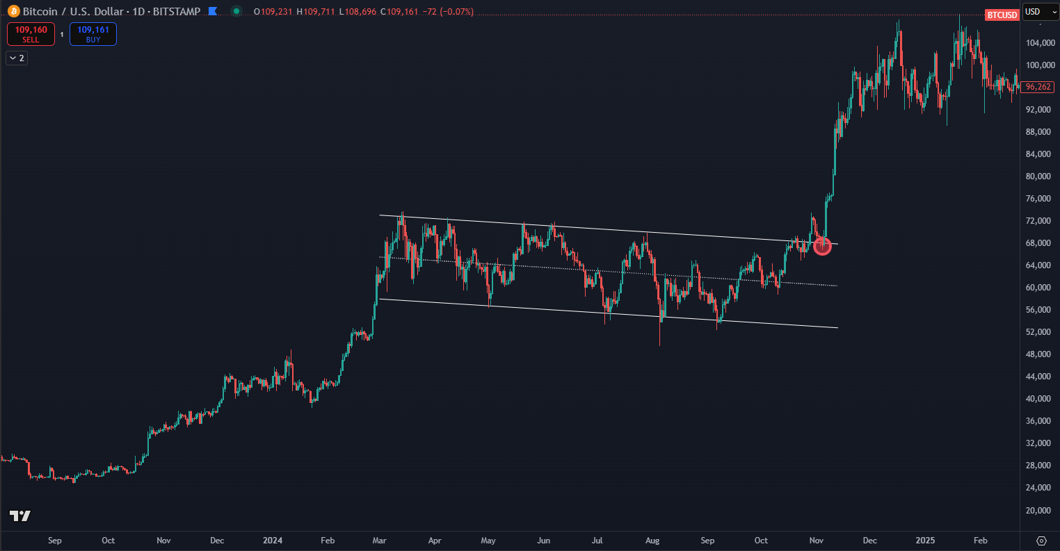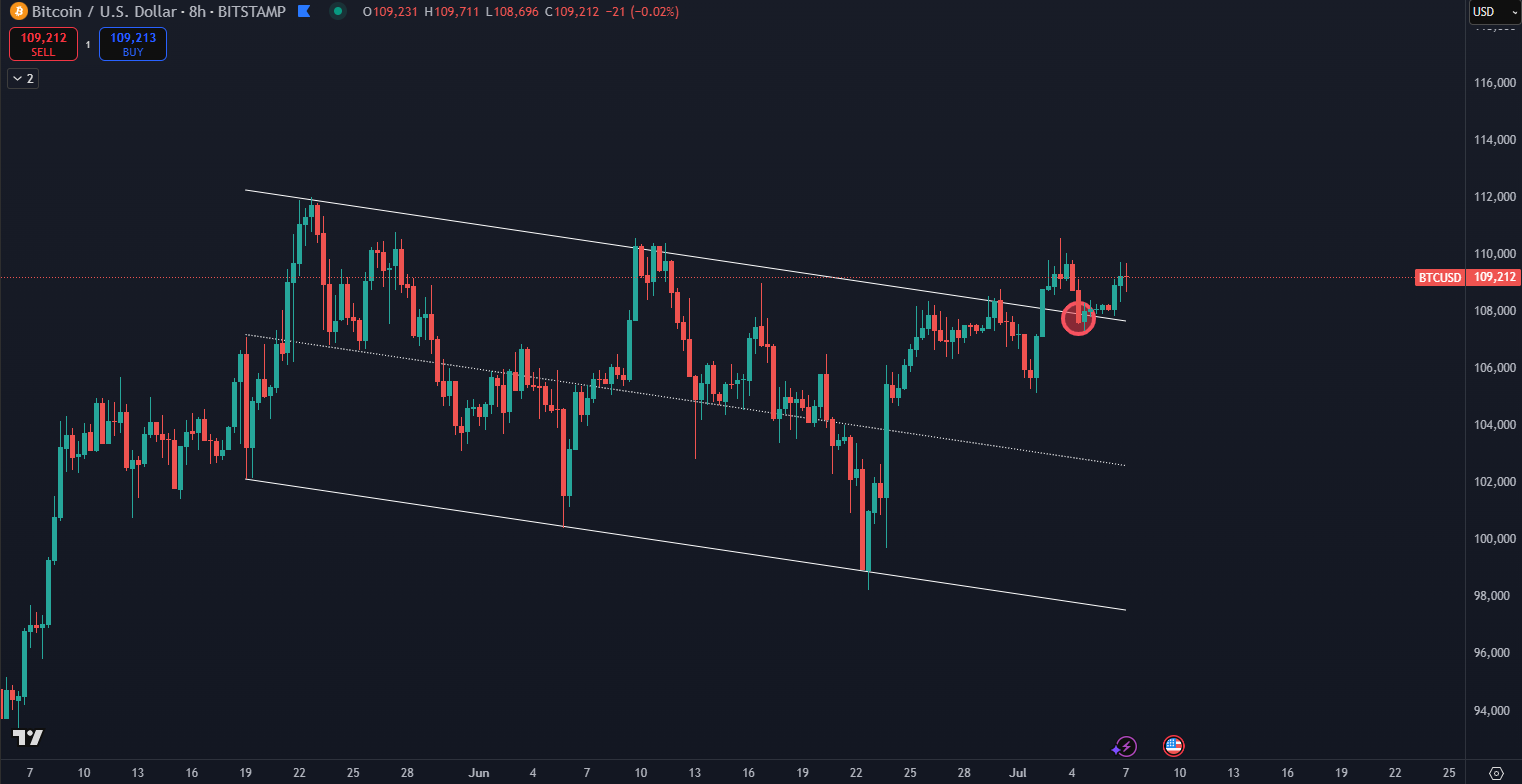 Bitcoin is once again attracting increased interest from analysts and investors. After months of fluctuation, a clear technical signal has finally appeared, indicating a continuation of the upward trend. On the chart from TradingView, the formation known as a “falling flag” has ended — this is a corrective pattern that occurs during upward trends and often precedes another bullish impulse.