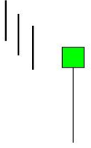- Hammer: A bullish reversal pattern typically found after a downtrend. It has a small body with a long lower wick, indicating that sellers pushed the price down, but buyers managed to bring it back up, signaling potential trend reversal upward.