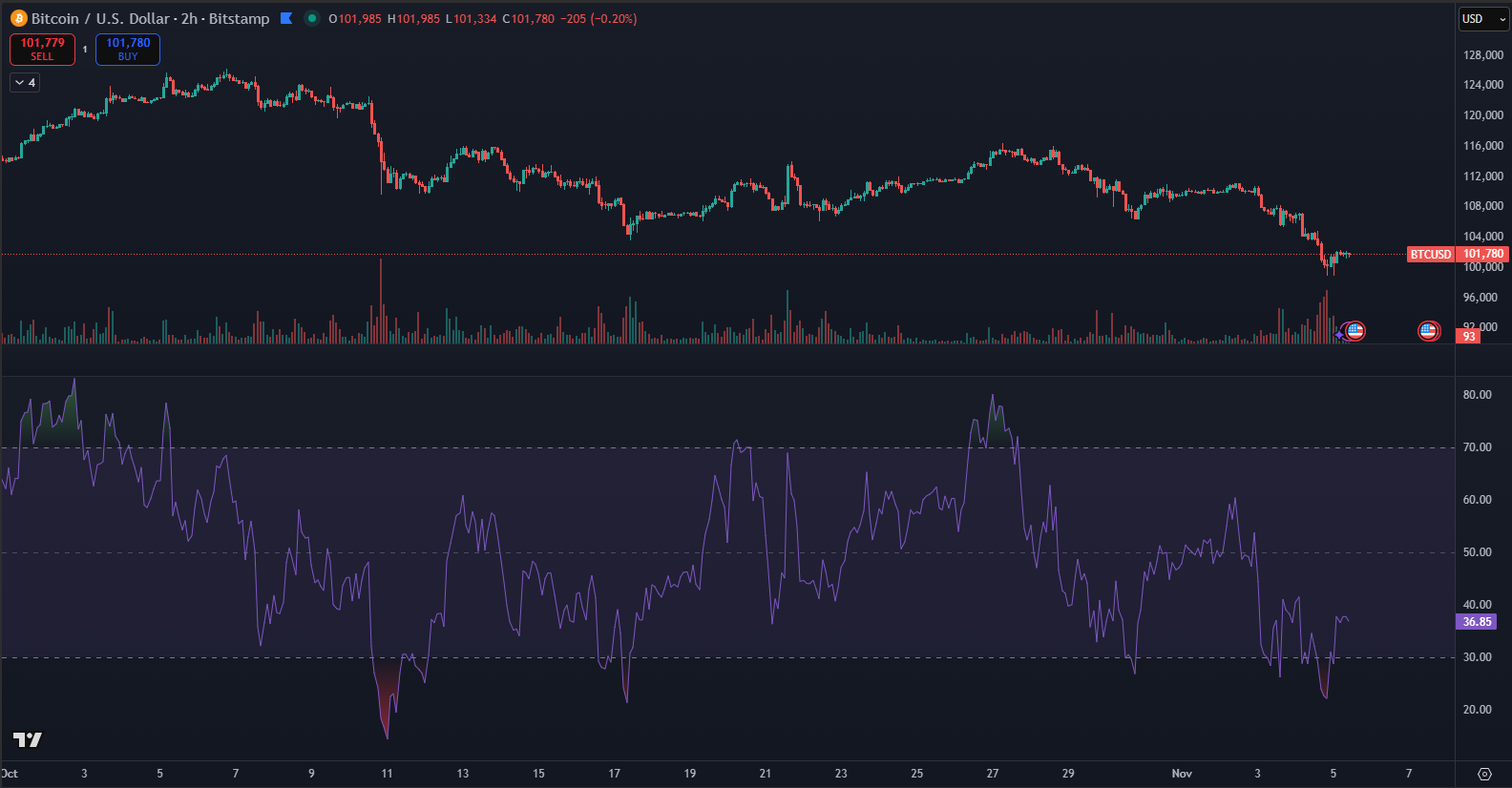 - RSI (Relative Strength Index): Measures the speed and change of price movements on a scale from 0 to 100. Values above 70 indicate an overbought condition (potential price correction), while below 30 suggests oversold conditions (potential rebound). RSI helps detect when an asset may be losing momentum.