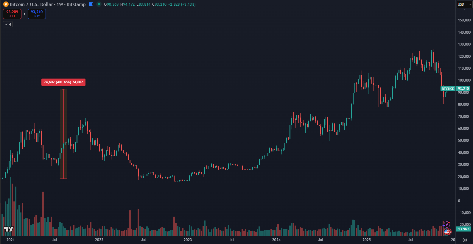 Bitcoin and 5-year investment performance. Source: tradingview.com