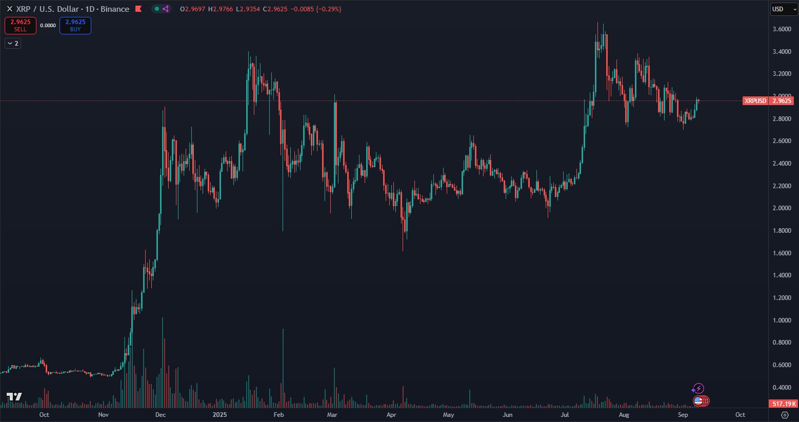 According to CoinMarketCap, XRP is the 3rd largest cryptocurrency in the world with a market capitalization of approximately $176.5 billion, securing a significant market position. Data from TradingView shows the current XRP price around $2.96. The cryptocurrency recently reached a new all-time high of $3.66, confirming its growing strength and investor interest in global financial markets.