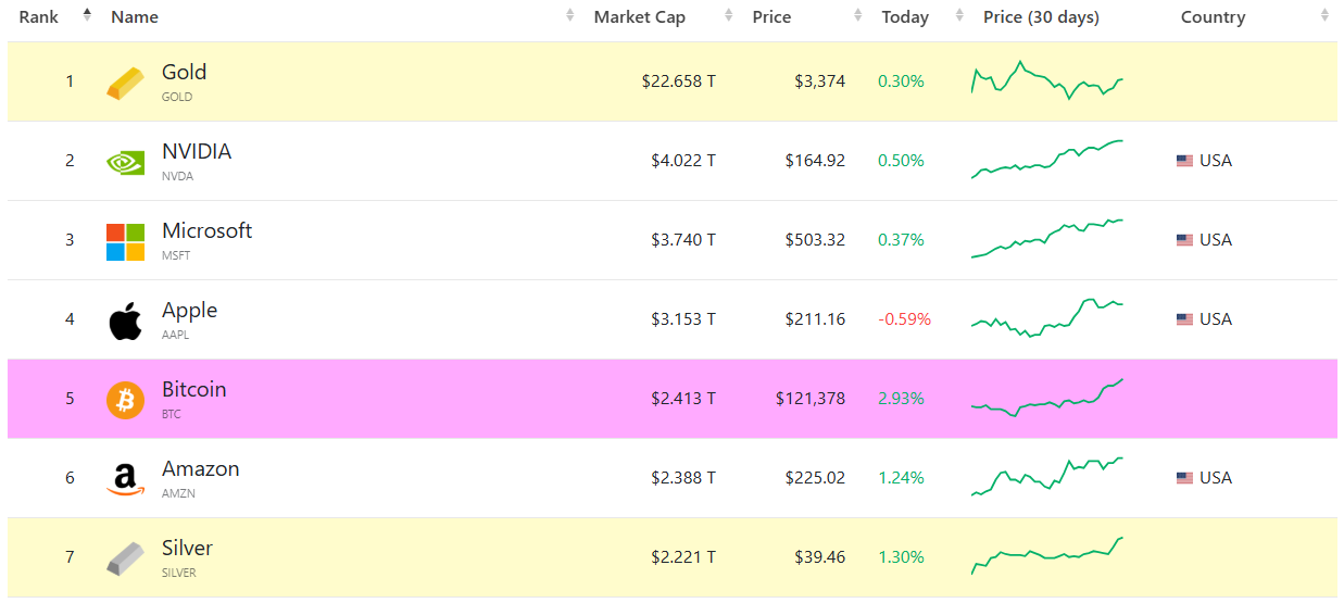 Bitcoin surpassed the market cap of silver