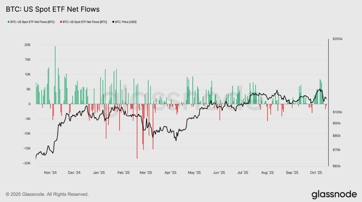 Activity in US spot ETFs has somewhat weakened, but no extremes were recorded. Investors in these funds, according to a Glassnode report, have started to sell slightly, with a net outflow of approximately 2,300 BTC over the week. This development contrasts with past crises, when sales accelerated sharply.