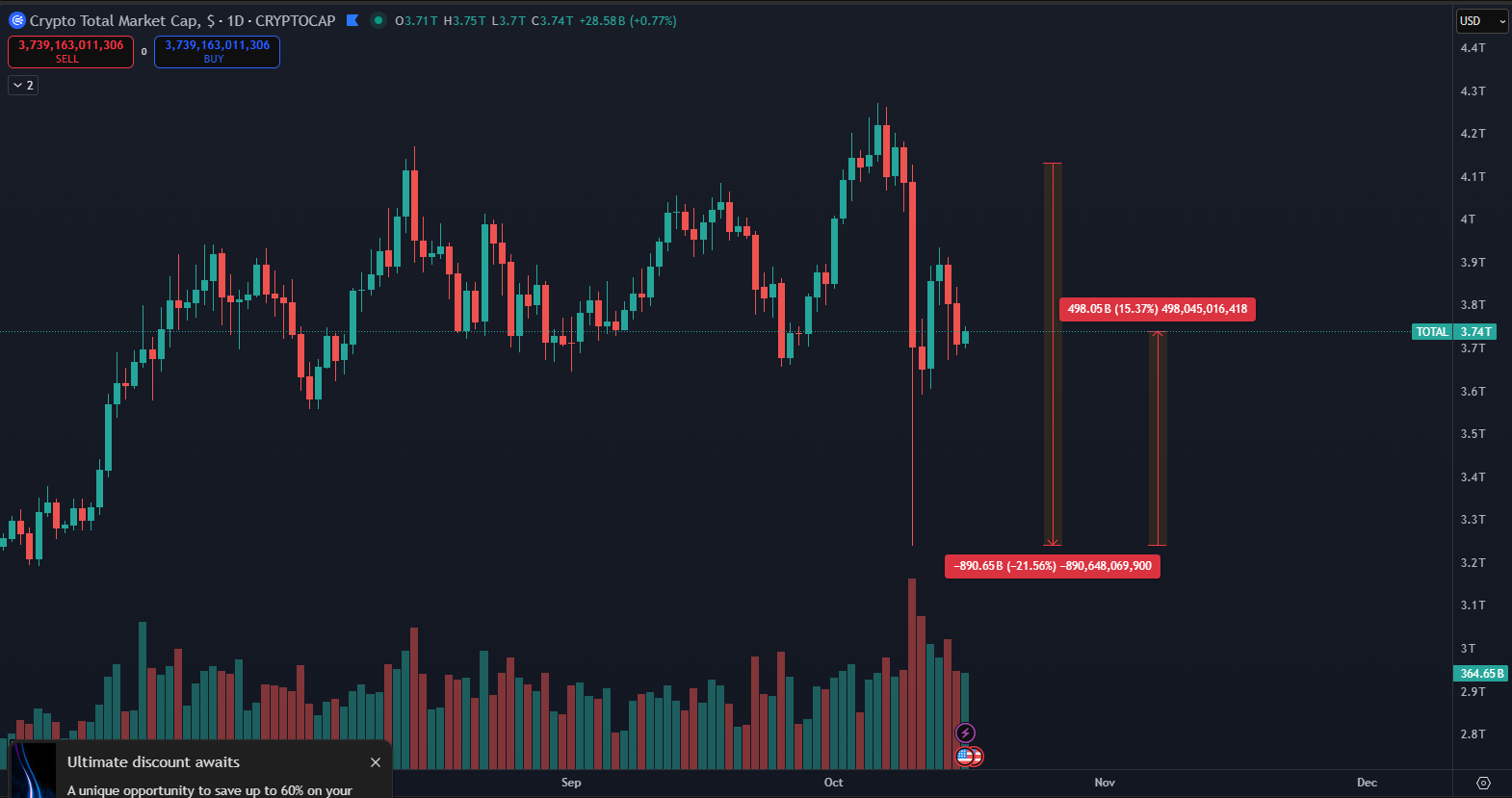 Cryptocurrencies, according to TradingView data, are facing a critical moment after one of the largest liquidations in the history of digital assets. After the market saw nearly $900 billion in market cap liquidated in a single day, a new balance between centralized and decentralized platforms began to form.