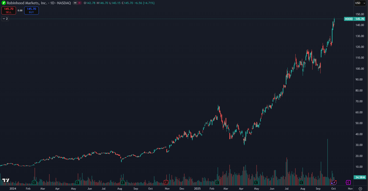 Robinhood shares breaking records. Source: tradingview.com