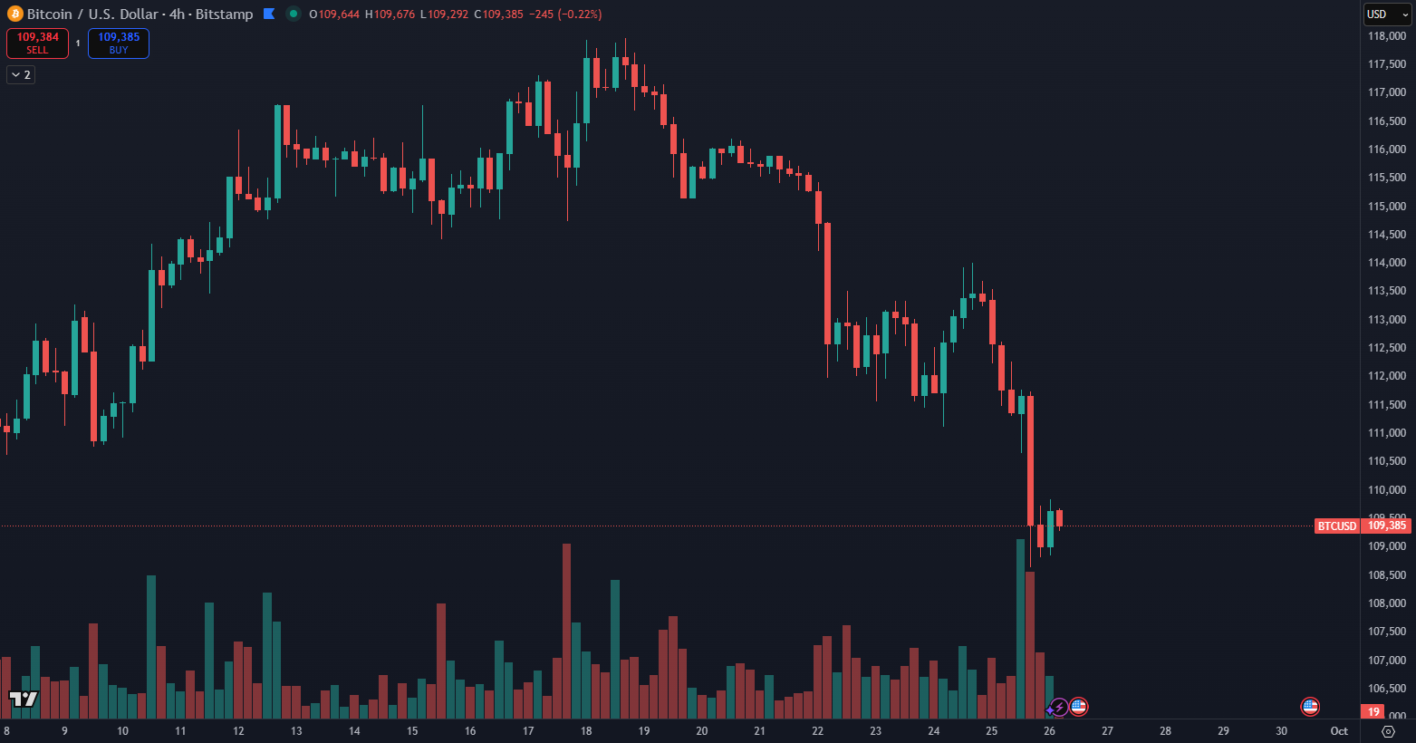 Bitcoin has faced significant swings in recent days, confirmed by Thursday’s drop. According to TradingView, the largest cryptocurrency’s price fell below 109,000 dollars, marking the lowest level since early September. This movement occurred after the release of macroeconomic data from the US, showing that economic growth was much stronger than expected.