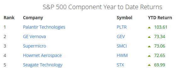 Top 5 most profitable stocks in 2025. Source: slickcharts.com