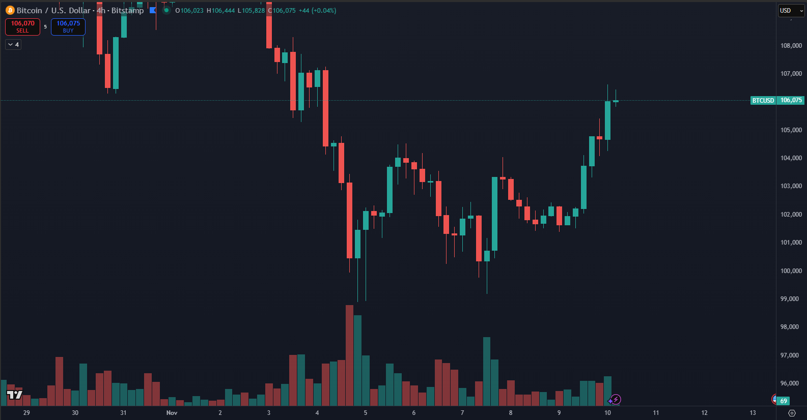 At the time of writing, it is trading around $106,000, with increased buying volume observed following the announcement of new economic measures in the United States. These measures could have a significant impact on the further development of the crypto market, as economic stimulus often leads to increased activity by investors in risk assets, including Bitcoin.